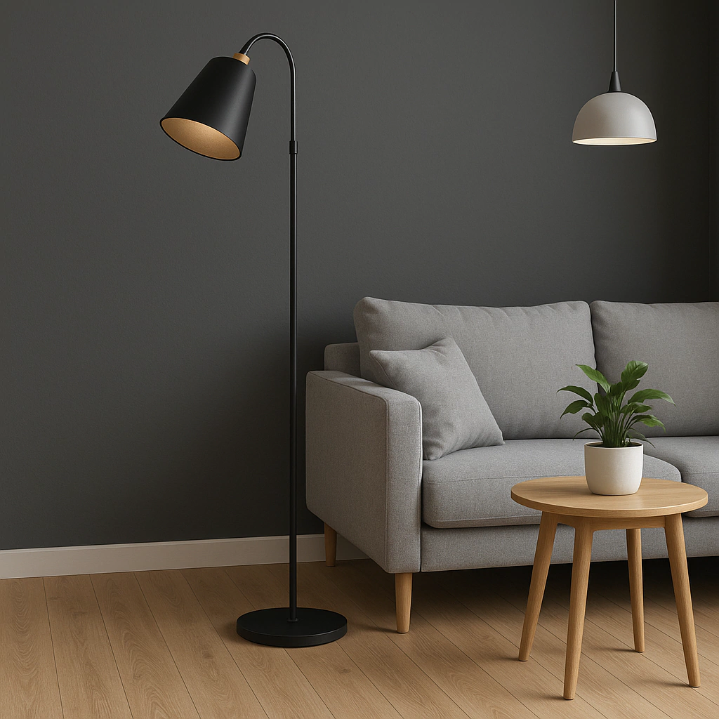 Lámpara de pie portátil modelo Febo, ideal como velador para lectura o iluminación ambiental. Compatible con lámparas LED E27, ofrece practicidad y diseño contemporáneo en color negro, combinando con cualquier estilo de decoración. Su estructura liviana y funcional permite moverla fácilmente y ubicarla donde se necesite. Perfecta para dormitorios, livings, escritorios o rincones de lectura.