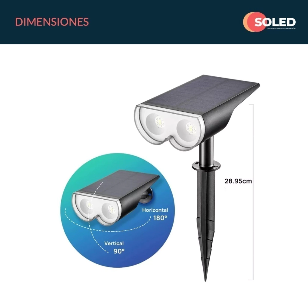 El foco solar con 16 luces LED de alto brillo que producen hasta 650 lúmenes de salida de luz de 6500 K, 50% más brillante que otros. Ángulo ajustable de las luces y panel solar con tasa de conversión fotoeléctrica de hasta un 20%, reduciendo enormemente el tiempo de carga.